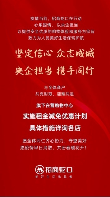 為幫助商戶走出困境,招商蛇口采取先發策略,提出減免措施。針對產業園區辦公類客戶,公司擬免除2020年1月31日至2月9日期間(10天)50%的租金。針對深圳區域商業項目,擬給予商戶2020年1月25日至2月9日(年初一至年十六)租金減半的優惠措施。