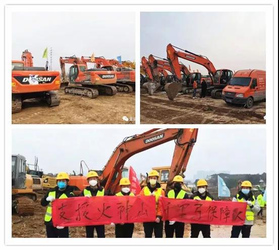 為保證施工順利進行,斗山集團緊急調撥20萬元的挖掘機常用配件支援武漢火神山和雷神山醫院現場建設。