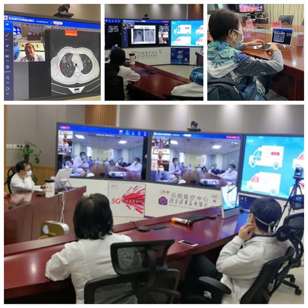 2月25日,在中國聯(lián)通5G網(wǎng)絡(luò)和醫(yī)療云平臺支撐下,橫跨武漢、北京和舟山三地共六個會場的新冠肺炎CT遠(yuǎn)程會診順利舉行。