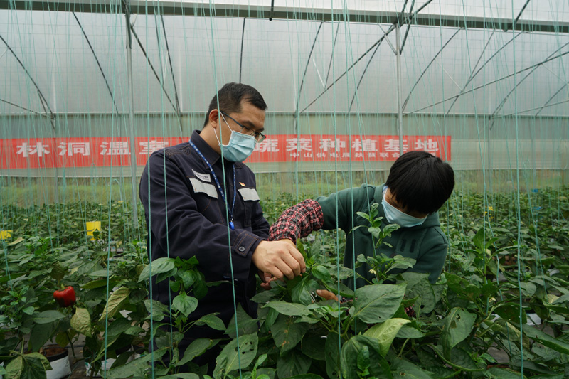 春天里,大棚里的彩椒苗比較潮濕,結(jié)出的果子質(zhì)量不好,扶貧干部和村民一起,嚴(yán)把成品質(zhì)量關(guān)。譚茂茜 攝