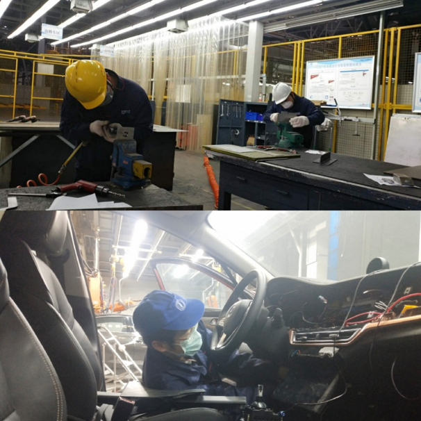 黃忠露,長(zhǎng)安汽車焊接工,重慶市勞動(dòng)模范。突如其來(lái)的新冠肺炎疫情,導(dǎo)致工作室開源節(jié)流項(xiàng)目——新能源樣車改制項(xiàng)目交付節(jié)點(diǎn)臨近(A301EV、C211EV5、C385),長(zhǎng)安汽車勞模黃忠露工作室積極主動(dòng),改制成員全部就位,打響樣車改制、抗擊戰(zhàn)“疫”第一“槍”。為保證安全防疫與車輛改制兩不誤,黃忠露帶領(lǐng)改制成員嚴(yán)格按照“五到位、九必須、一及時(shí)”開展復(fù)工復(fù)業(yè)過(guò)程管控,按要求組織培訓(xùn),強(qiáng)調(diào)工作中全程佩戴防疫口罩,通過(guò)細(xì)節(jié)到位保障防疫必勝。他率領(lǐng)工作室成員,以四象限法則逐步分解各項(xiàng)工作任務(wù),全力以赴搶抓新能源樣車A301EV等項(xiàng)目節(jié)點(diǎn),積極投入到C211EV5樣件13套、C385旋轉(zhuǎn)屏改制及EPA1前擋玻璃新品驗(yàn)證改制中,為實(shí)現(xiàn)2020年創(chuàng)收200萬(wàn)貢獻(xiàn)力量。