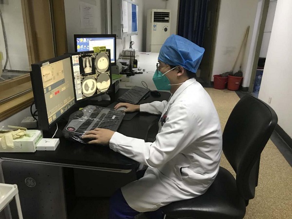 王坤在CT室給患者做肺CT檢查