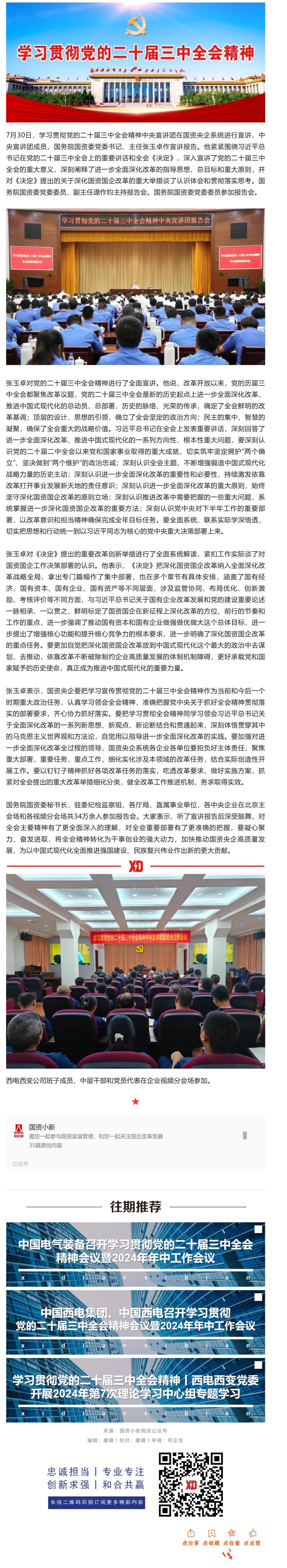 西電西變黨委組織參加學習貫徹黨的二十屆三中全會精神中央宣講團國資央企報告會